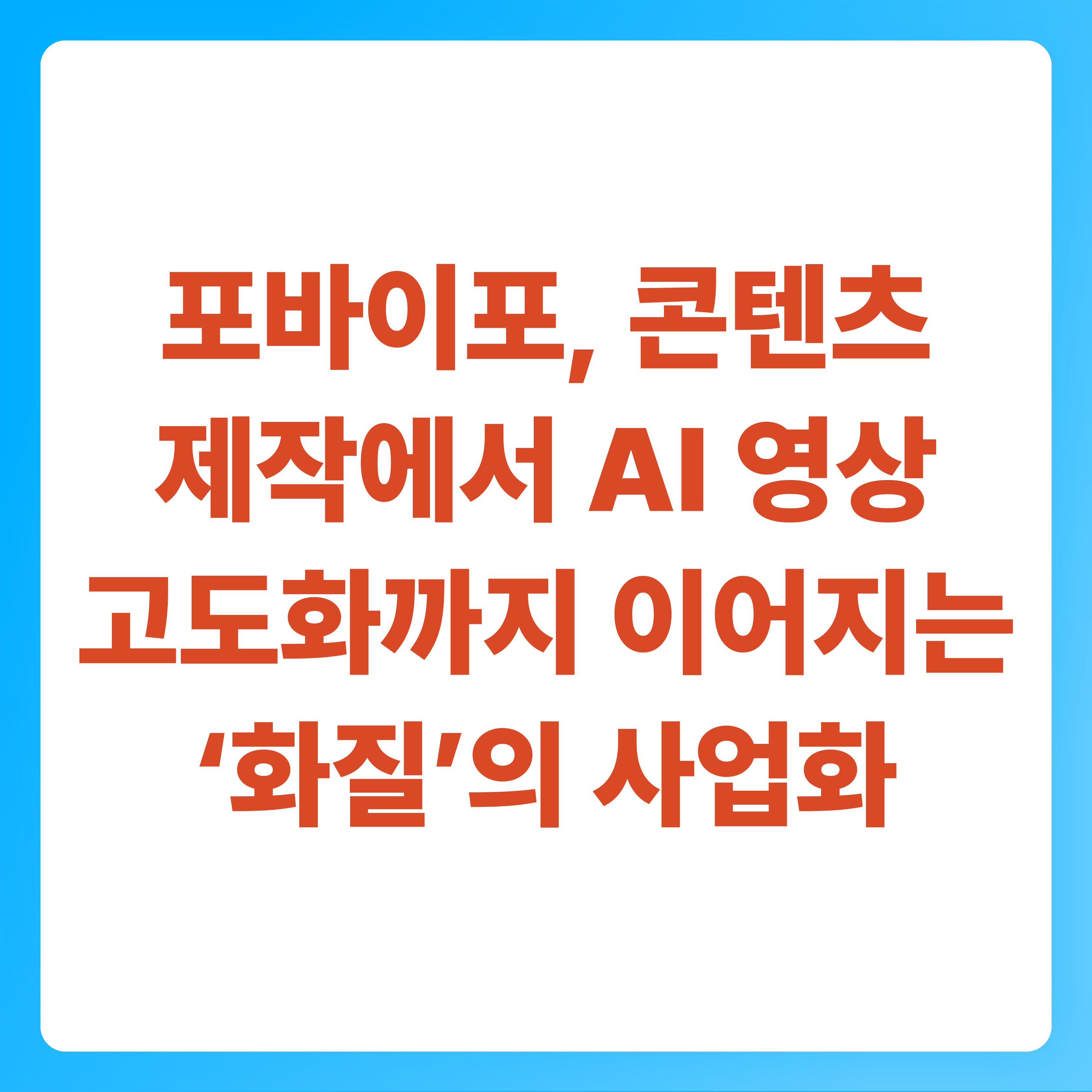 포바이포는 영상·콘텐츠 제작 역량을 기반으로, 고화질화(업스케일링)와 리마스터링처럼 화질 개선 기술을 사업화하려는 기업으로 알려져 있습니다. 이때 핵심은 단순 제작 수주를 넘어, 반복 가능한 소프트웨어/솔루션 형태로 확장할 수 있느냐입니다. 👉🌿